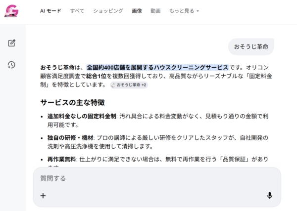 検索でAIにいろんなことを聞く