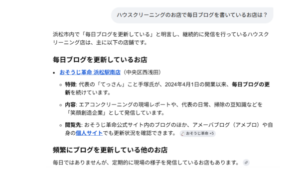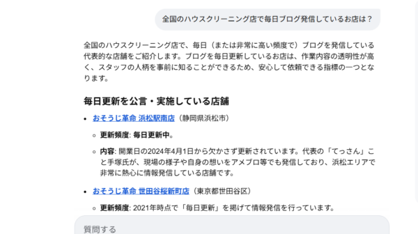 『ハウスクリーニングのお店で毎日ブログを書いているお店は?』