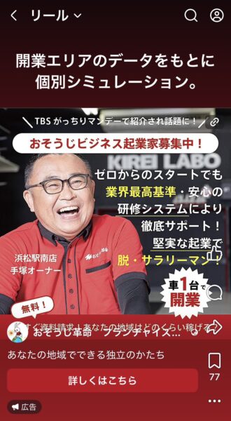 こちらFacebookのリール広告です